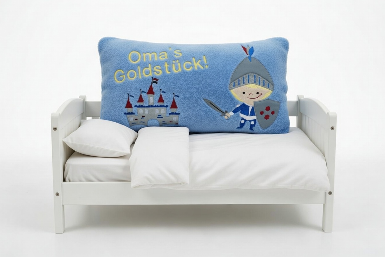 Kissen Ritter mit Oma's Goldstück bestickte