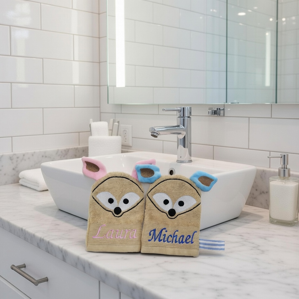 Der Waschlappen hat die Größe für eine erwachsene, weibliche Hand und kann sowohl von Ihrem Kind oder von Ihnen selbst benutzt werden.