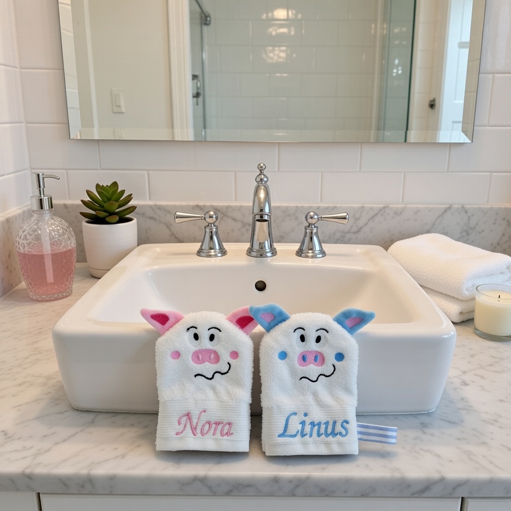 Waschhandschuh Schwein mit Wunschname