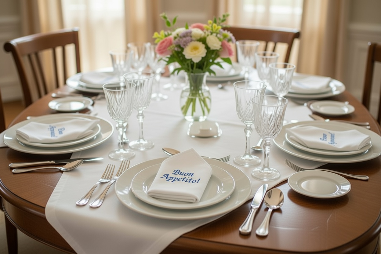 Lieferumfang: Stoffservietten mit Text/Spruch bestickt.