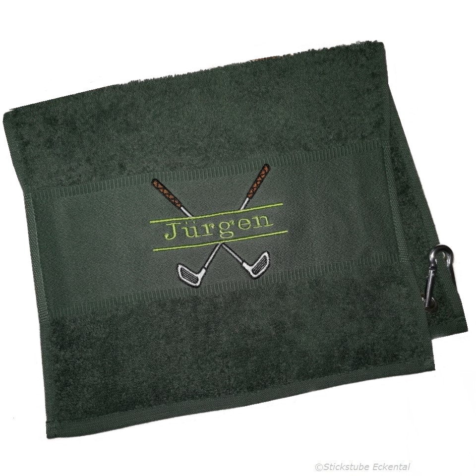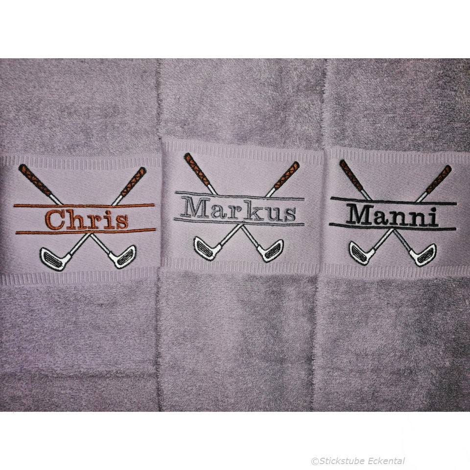Je Golf-Handtuch bis zu 10 Buchstaben inklusive. Die gewünschten Initialen oder Name werden bei mir doppelt bestickt, um eine höhere Strapazierfähigkeit und Lebensdauer zu erreichen.