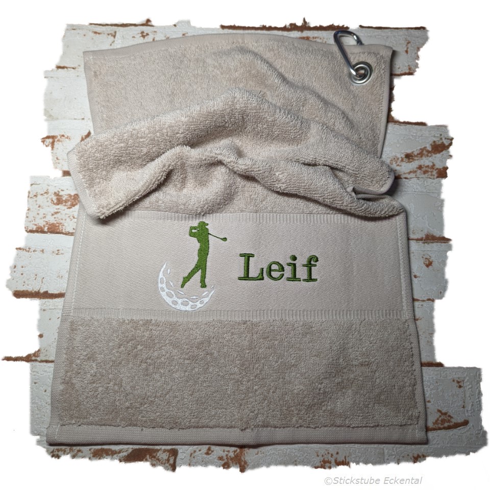Je Golf-Handtuch bis zu 10 Buchstaben oder Initiale inklusive.