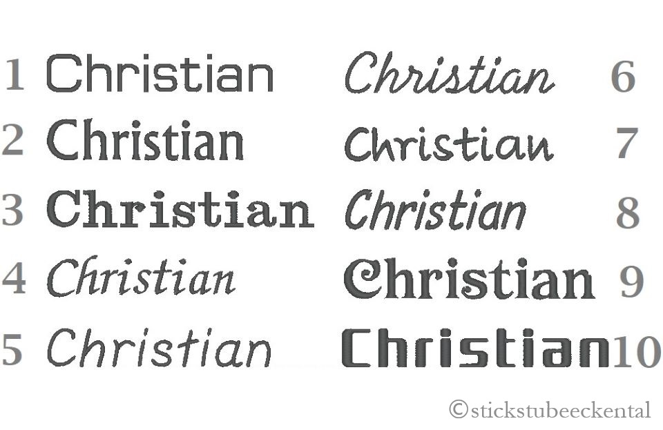 Beispiel: Christiane R D oder R. D. oder Joseph S. Die gewünschten Initialen oder Name werden bei mir doppelt bestickt, um eine höhere Strapazierfähigkeit und Lebensdauer zu erreichen.