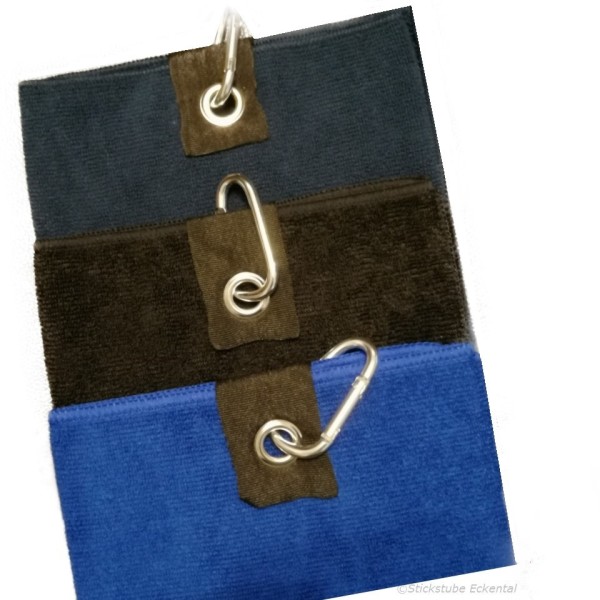 Die Ösen (12 mm ø) an meinen Golfhandtüchern sind hochwertig und werden von mir selbst mit einem Spezialwerkzeug angebracht. Die Verbindung mit dem Handtuch ist extrem stabil und hält höchsten Beanspruchungen stand. Auch nach unzähligen Waschvorgängen bleibt die Verbindung Öse/Handtuch bombenfest.
