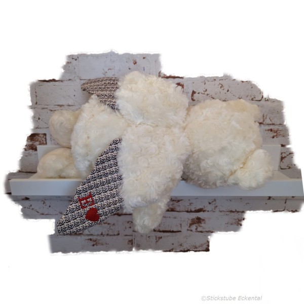 Die bestickte Variante besticht durch ein edles Design und ist deutlich strapazierfähiger als eine Bedruckung; das bedeutet, Sie können das Stofftier viele Male waschen, ohne dass sich die Schrift auflöst.