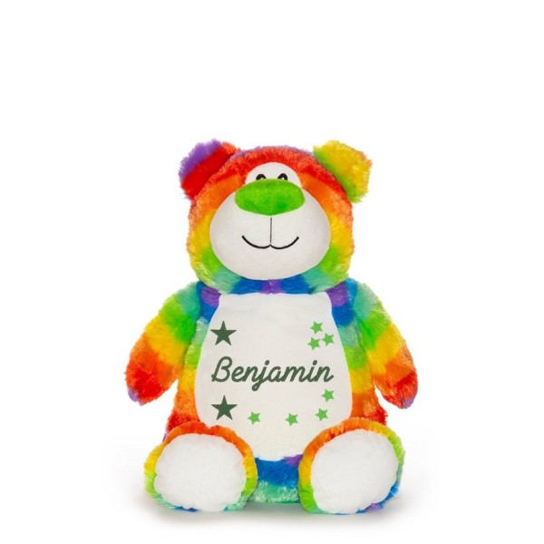 Hochwertiges Microfaserplüsch – 100% Polyester - Bär Regenbogen Motiv 2 sitzend ca. 30 cm - Bär Regenbogen Motiv 2 Gesamthöhe ca. 40 cm.