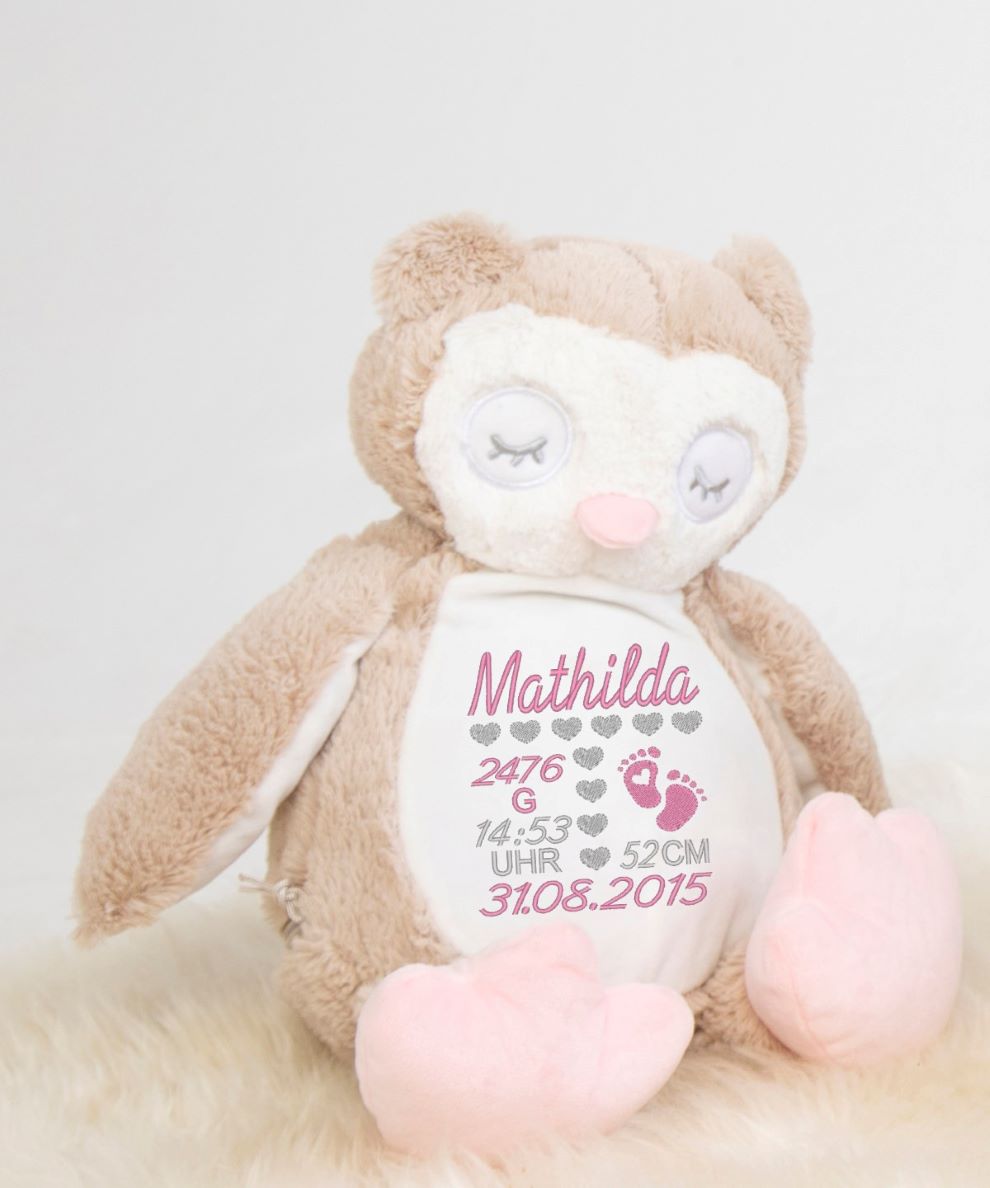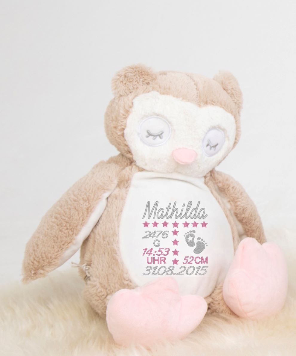 Die bestickte Variante besticht durch ein edles Design und ist deutlich strapazierfähiger als eine Bedruckung; das bedeutet, Sie können das Stofftier viele Male waschen, ohne dass sich die Schrift auflöst.