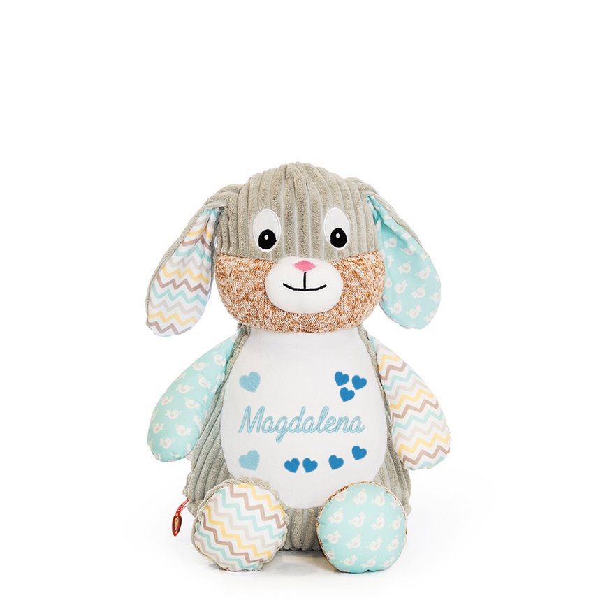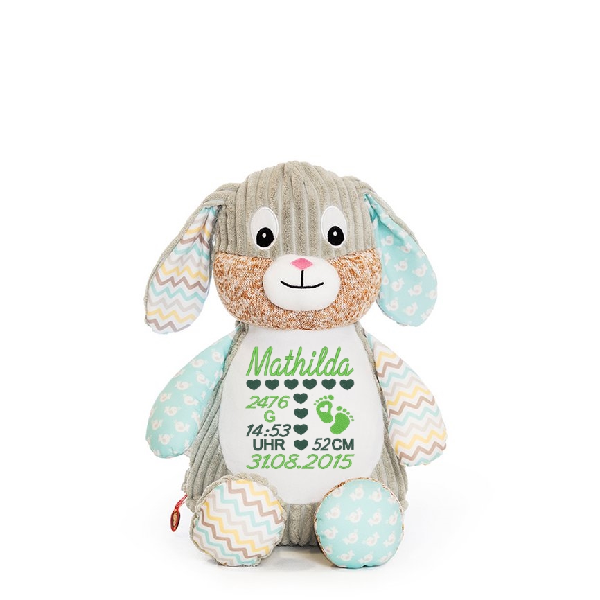 Die bestickte Variante besticht durch ein edles Design und ist deutlich strapazierfähiger als eine Bedruckung; das bedeutet, Sie können das Stofftier viele Male waschen, ohne dass sich die Schrift auflöst.