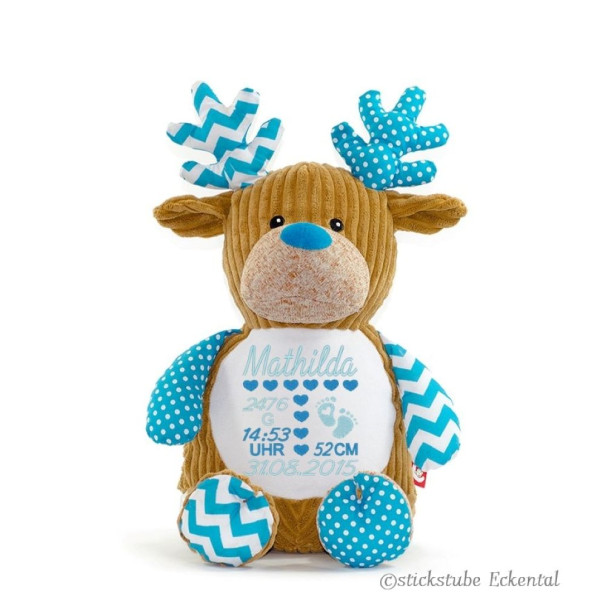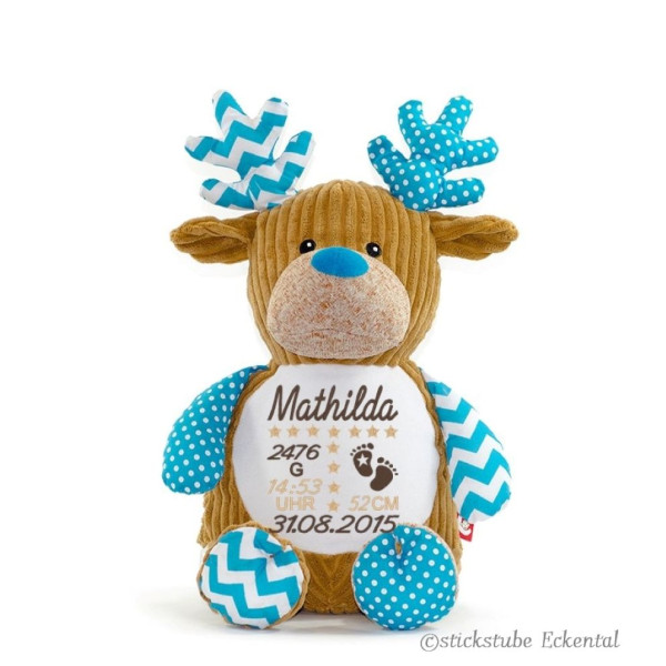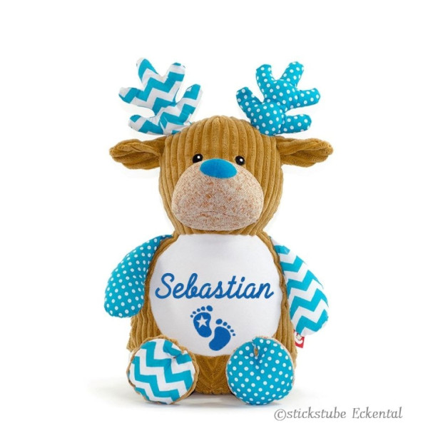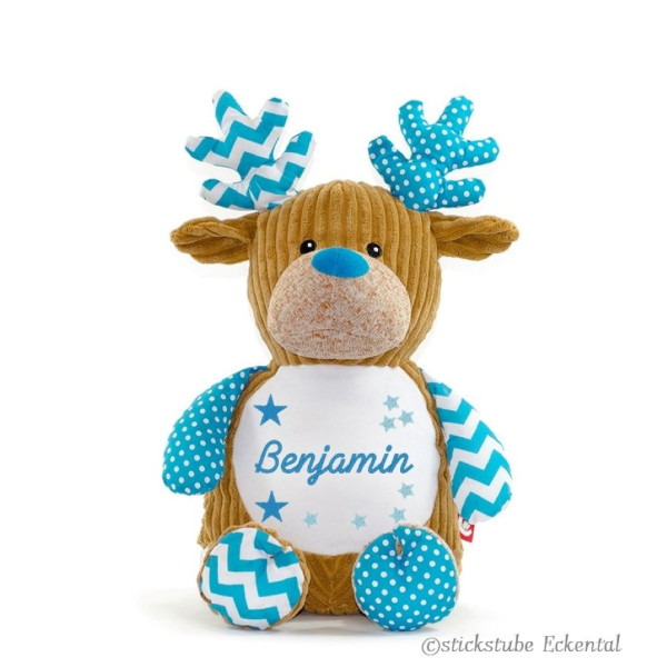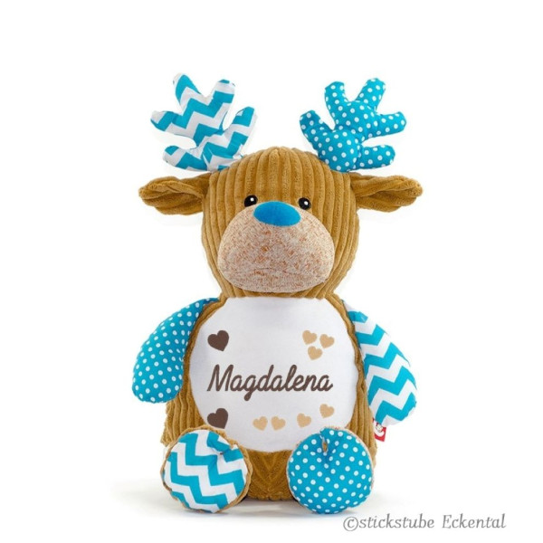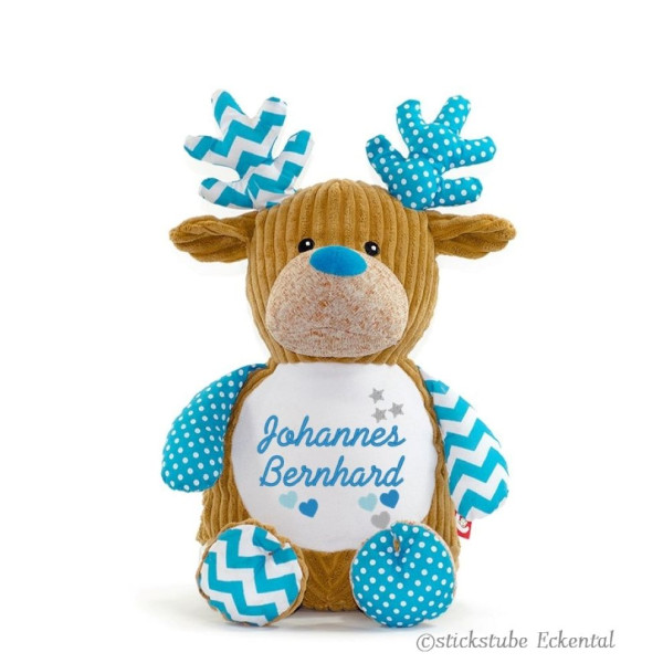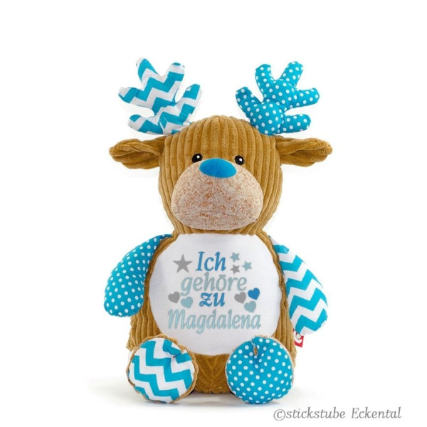 Hochwertiges Microfaserplüsch – 100% Polyester - Hirsch blau sitzend ca. 41 cm - Gesamthöhe ca. 51 cm.