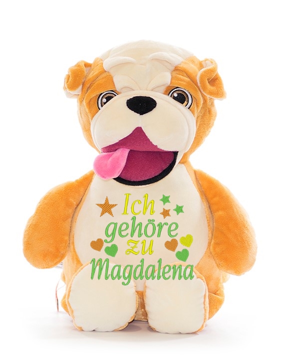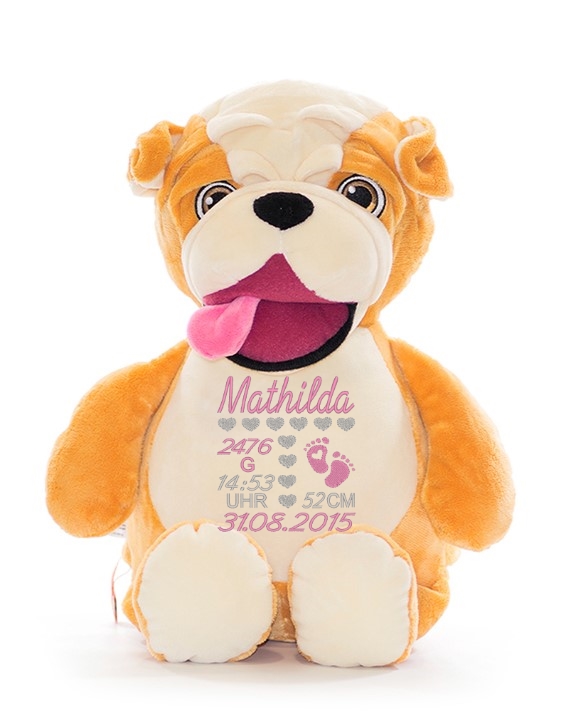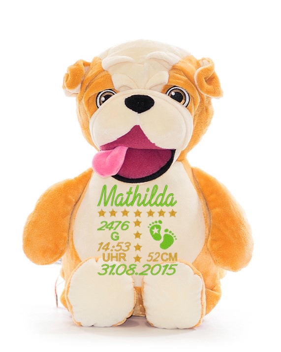 Die bestickte Variante besticht durch ein edles Design und ist deutlich strapazierfähiger als eine Bedruckung; das bedeutet, Sie können das Stofftier viele Male waschen, ohne dass sich die Schrift auflöst.