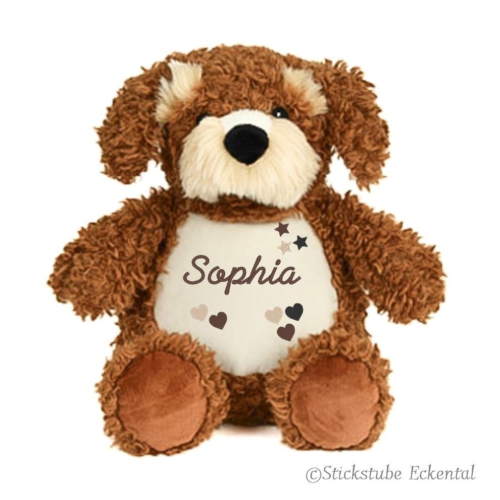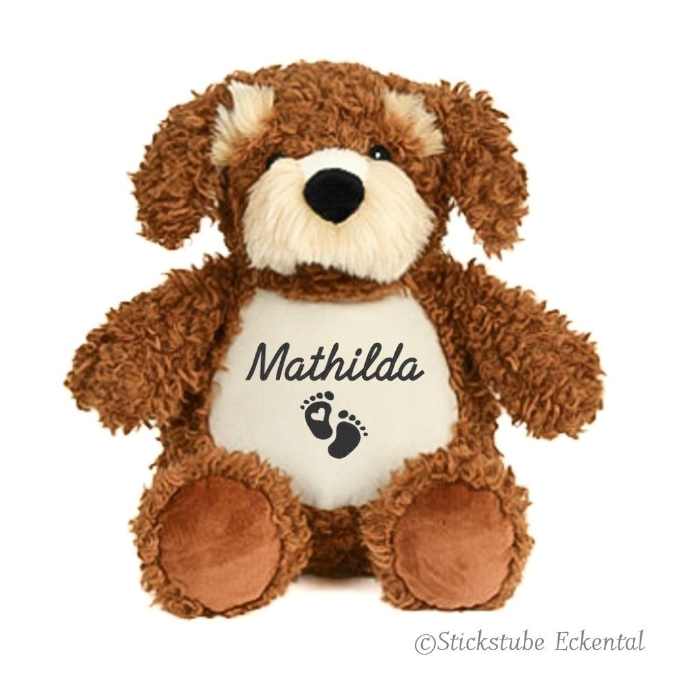Die bestickte Variante besticht durch ein edles Design und ist deutlich strapazierfähiger als eine Bedruckung; das bedeutet, Sie können das Stofftier viele Male waschen, ohne dass sich die Schrift auflöst.