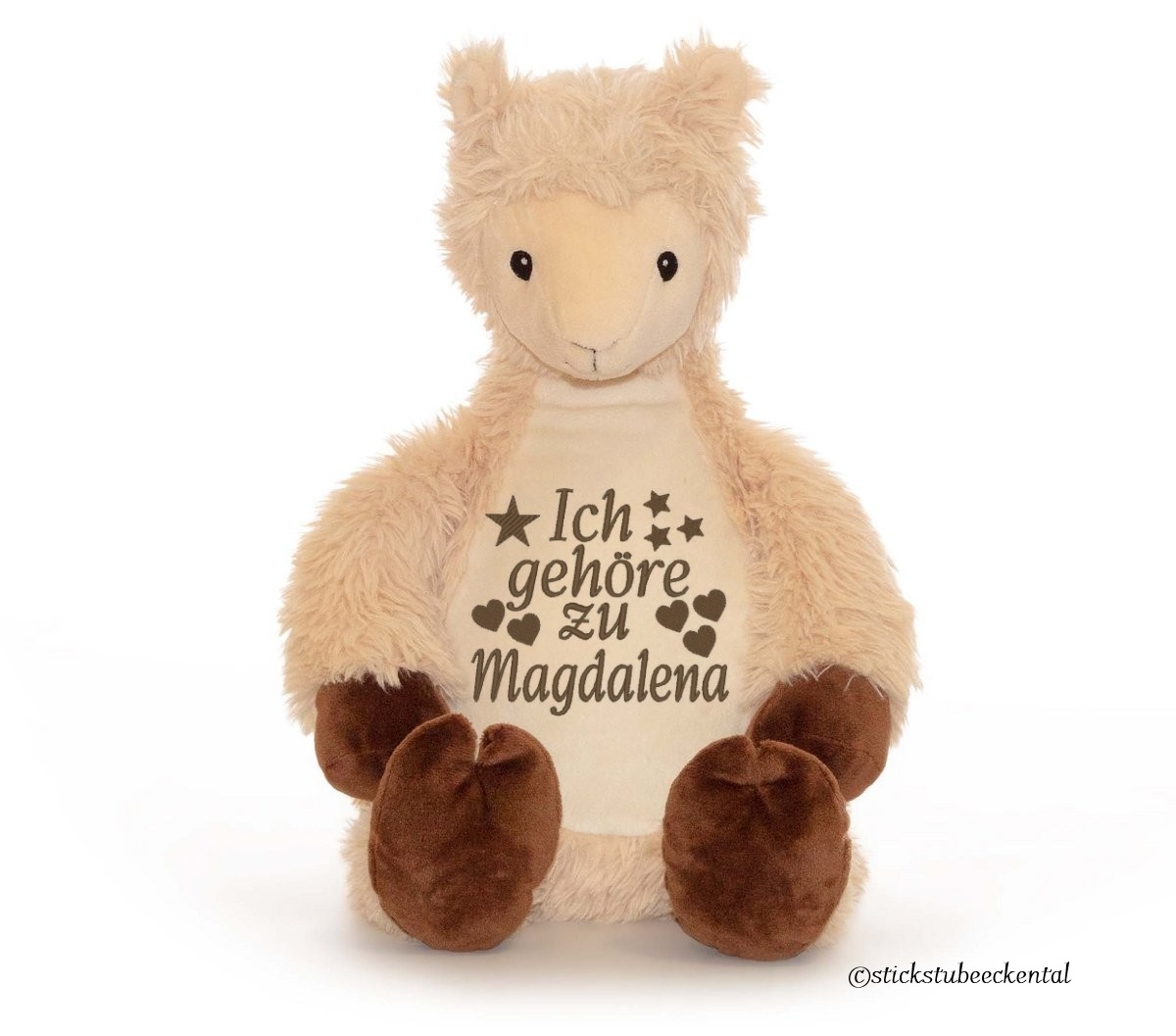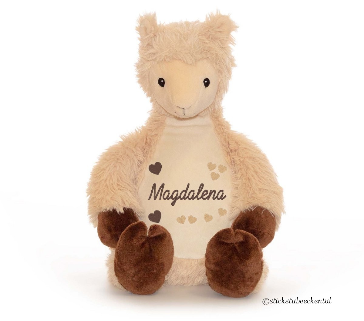 Die bestickte Variante besticht durch ein edles Design und ist deutlich strapazierfähiger als eine Bedruckung; das bedeutet, Sie können das Stofftier viele Male waschen, ohne dass sich die Schrift auflöst.