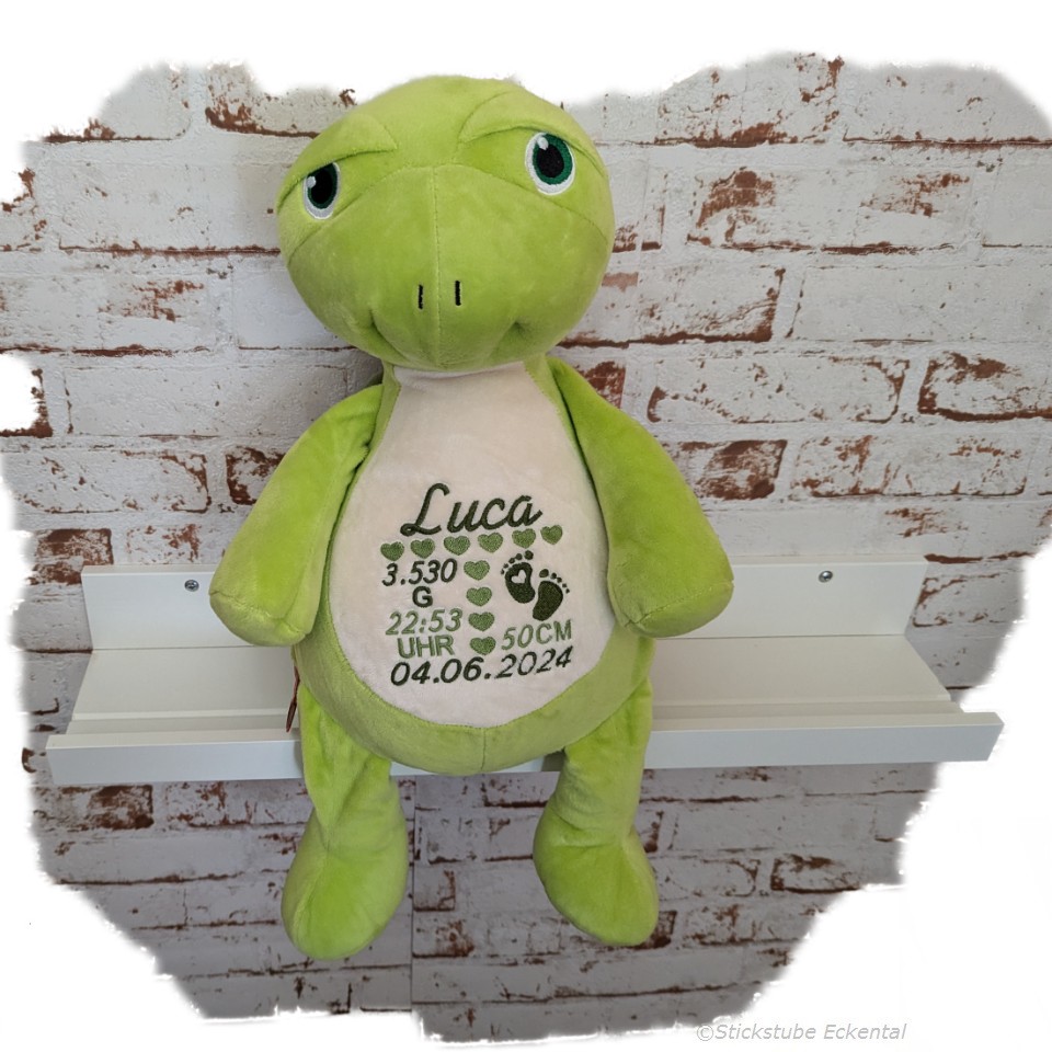 Meine Stoff-, Plüschtiere sind mit Ihren Wunschdaten bestickt, nicht bedruckt!