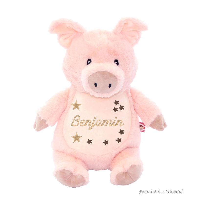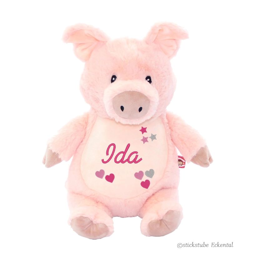 Die bestickte Variante besticht durch ein edles Design und ist deutlich strapazierfähiger als eine Bedruckung; das bedeutet, Sie können das Stofftier viele Male waschen, ohne dass sich die Schrift auflöst.
