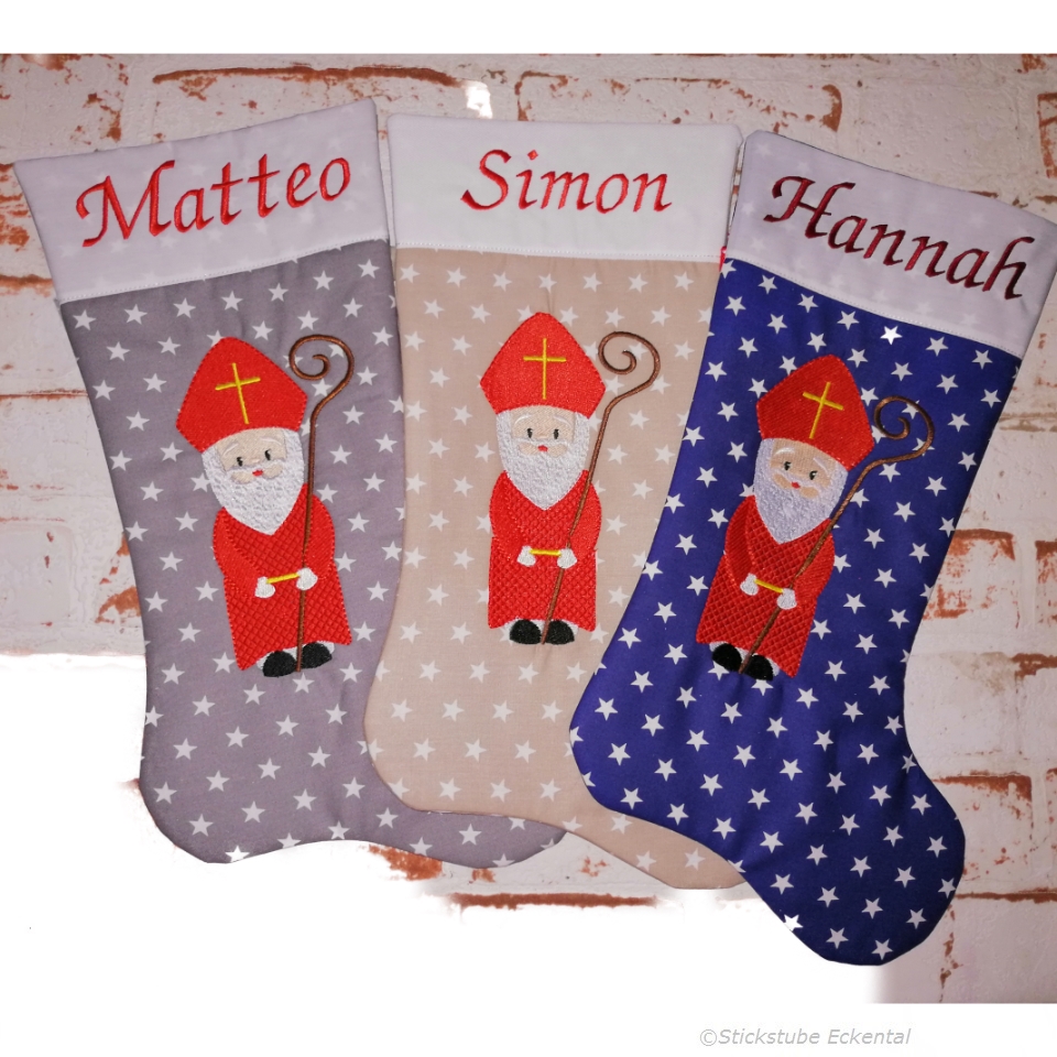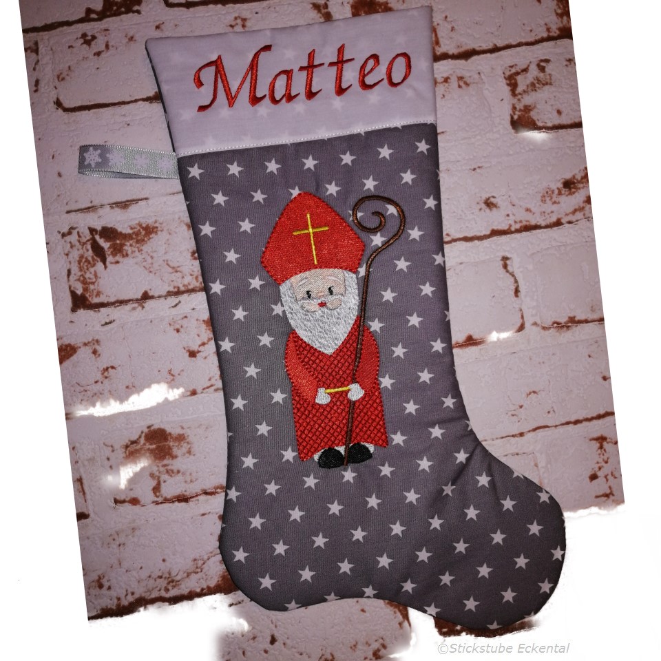 Preview: Bischof Weihnachtstrumpf besticken lassen