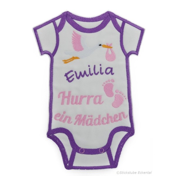 Body im Rahmen mit Wunschname Hurra ein Mädchen
