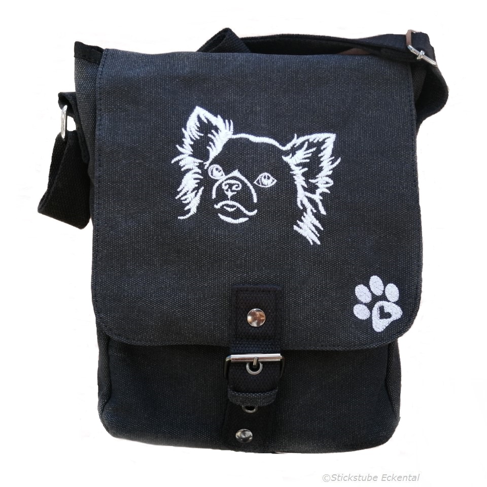 Reißverschluss-Netztasche unter der Klappe. Rückwärtige Reißverschlusstasche, Magnetverschluss, verstellbarer Schulterriemen.