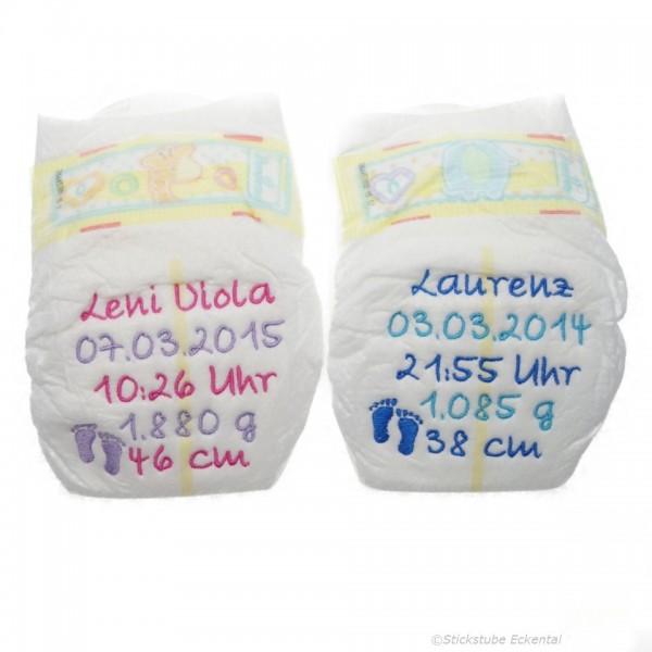 Bitte beachten Sie, das die Windel nur begrenzten Platz für eine Stickerei bietet, der Name sollte nicht allzu lang sein.