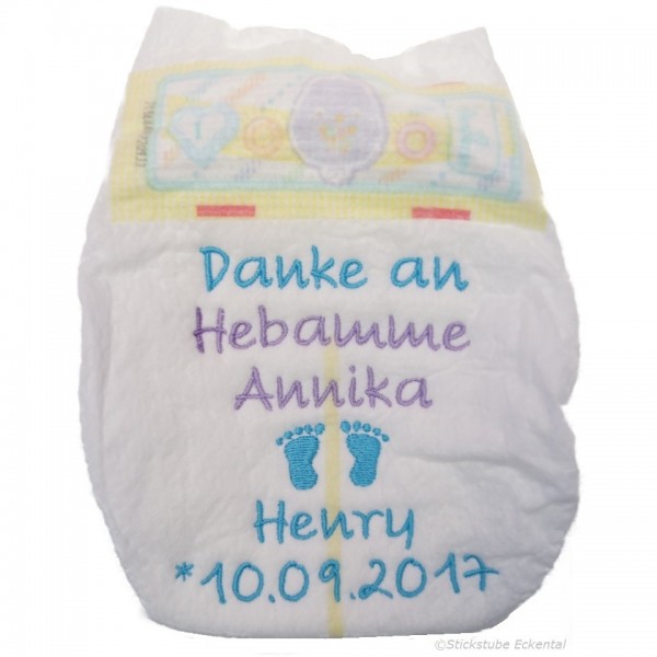 Bitte beachten Sie, das die Windel nur begrenzten Platz für eine Stickerei bietet, der Name sollte nicht allzu lang sein.
