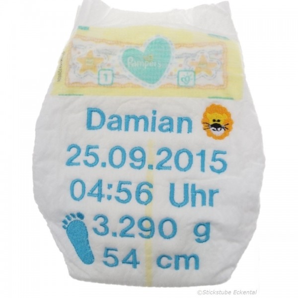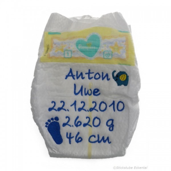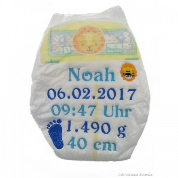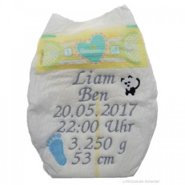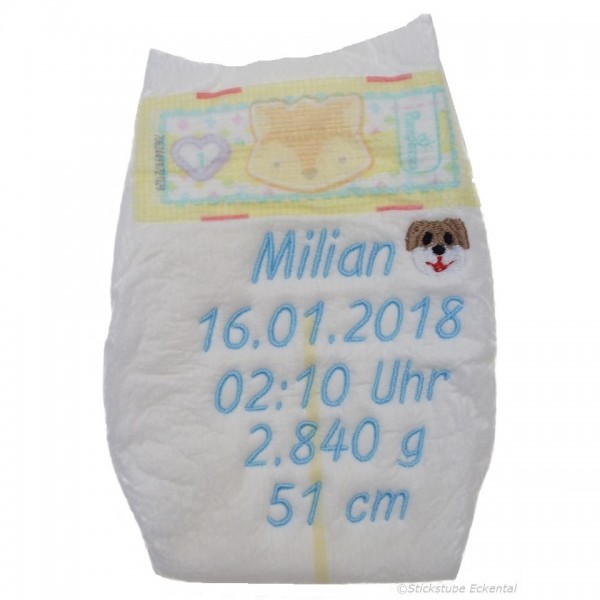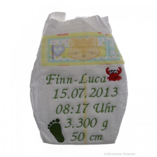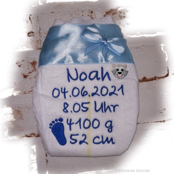Bestickte Windel mit Wunschdaten