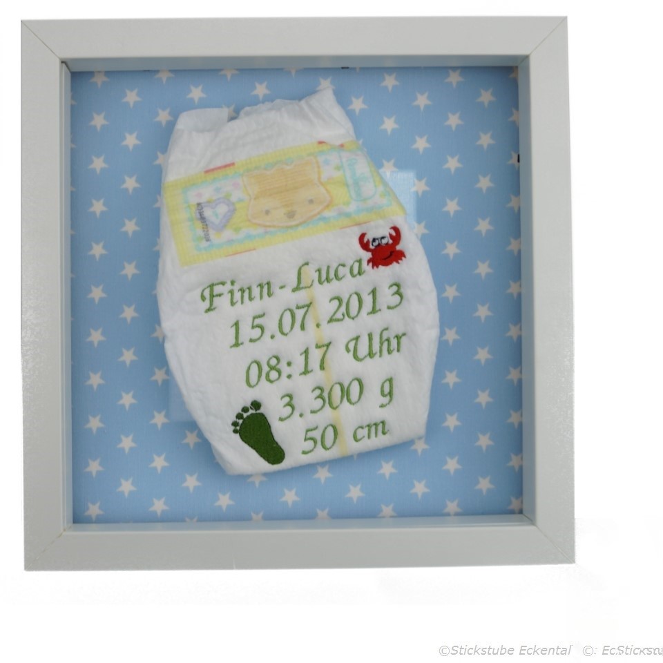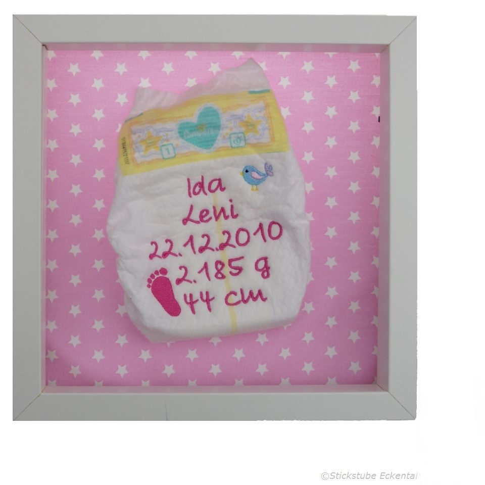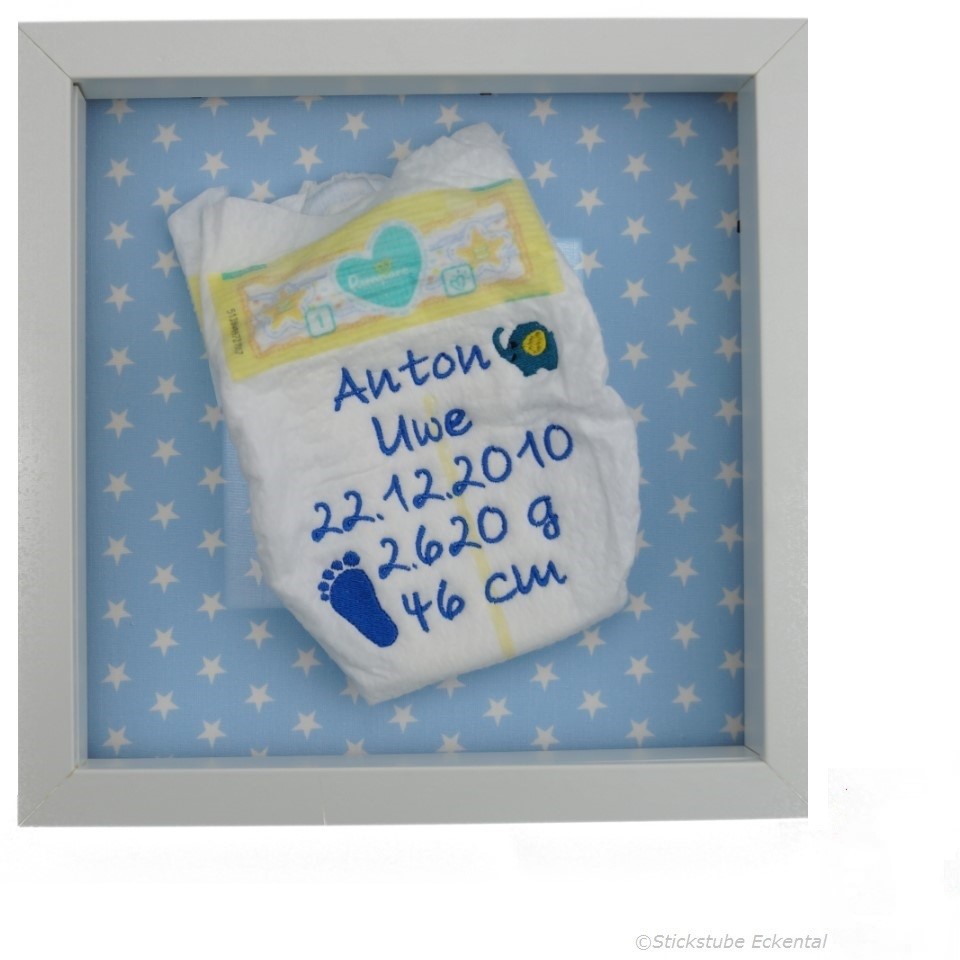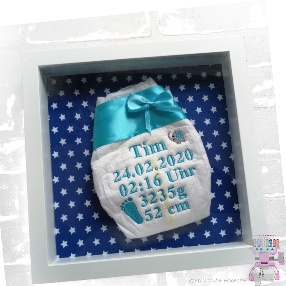 Bitte beachten Sie, das die Windel nur begrenzten Platz für eine Stickerei bietet, der Name sollte nicht allzu lang sein. Optimal passend für ca. bis zu 8 Buchstaben, Doppelnamen können untereinander gestickt werden.