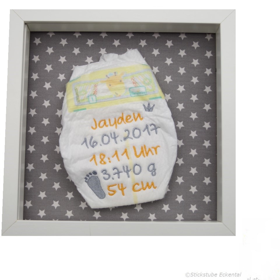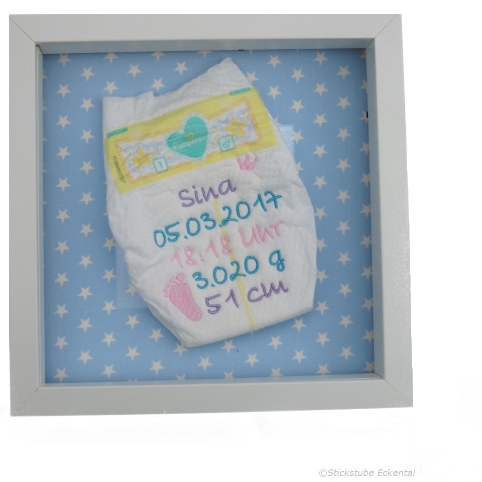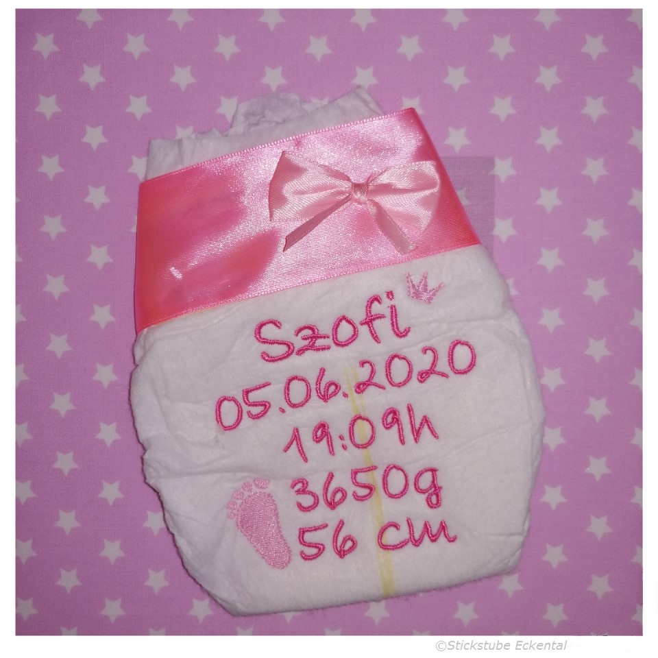 Bitte beachten Sie, das die Windel nur begrenzten Platz für eine Stickerei bietet, der Name sollte nicht allzu lang sein. Optimal passend für ca. bis zu 8 Buchstaben, Doppelnamen können untereinander gestickt werden.