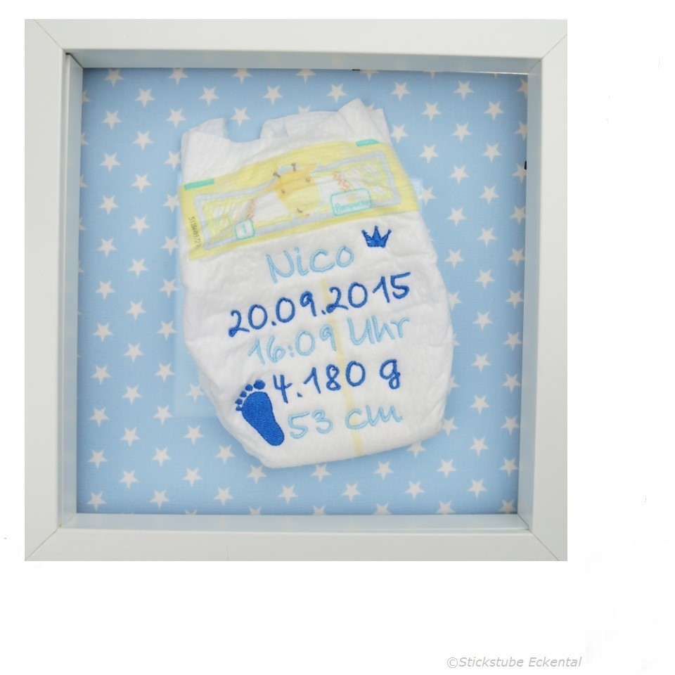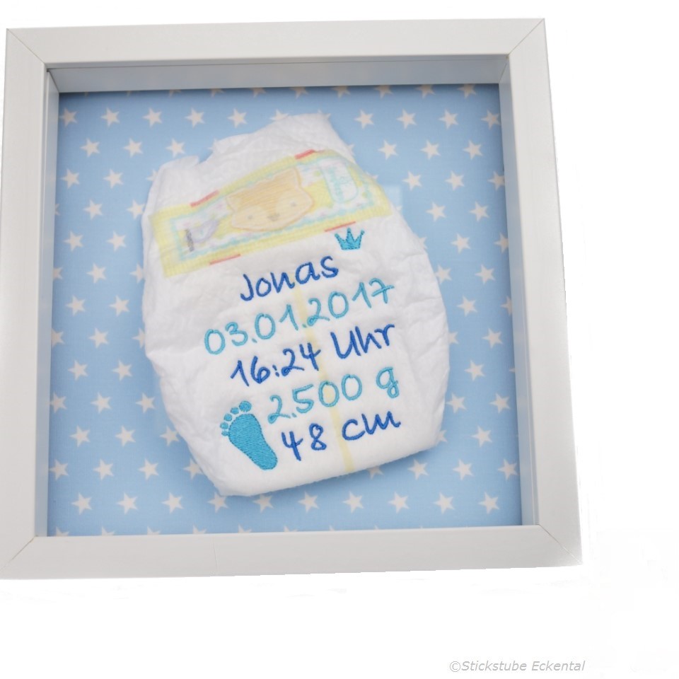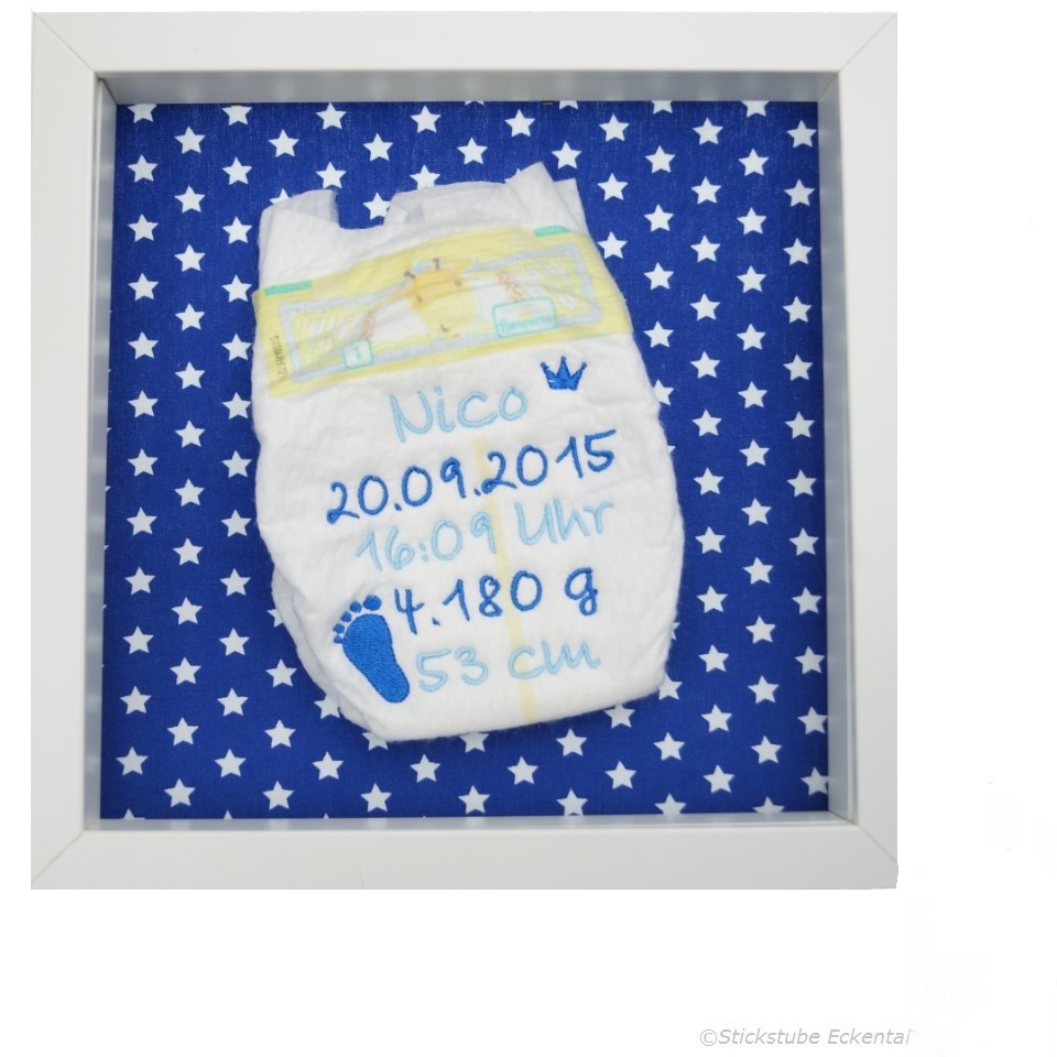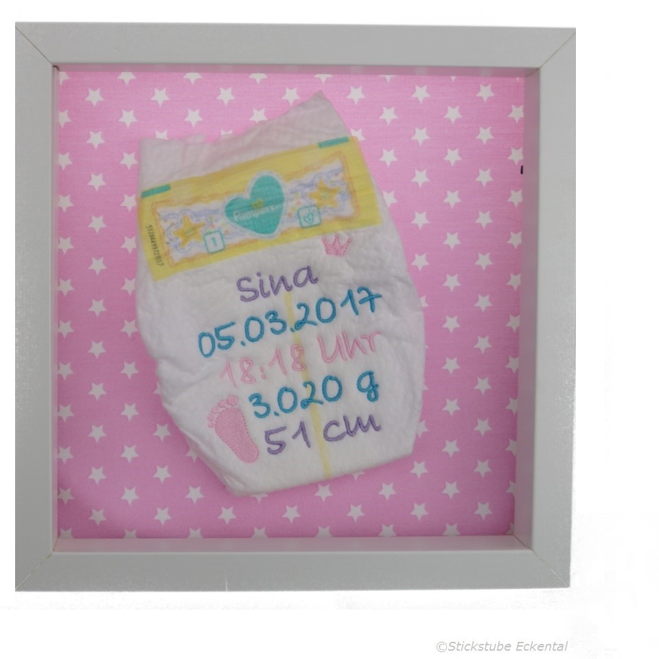 Bitte beachten Sie, das die Windel nur begrenzten Platz für eine Stickerei bietet, der Name sollte nicht allzu lang sein. Optimal passend für ca. bis zu 8 Buchstaben, Doppelnamen können untereinander gestickt werden.