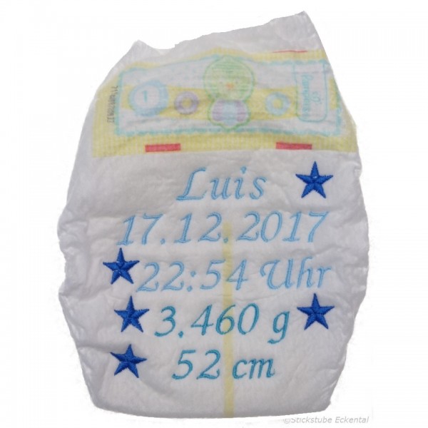 Bitte beachten Sie, das die Windel nur begrenzten Platz für eine Stickerei bietet, der Name sollte nicht allzu lang sein.