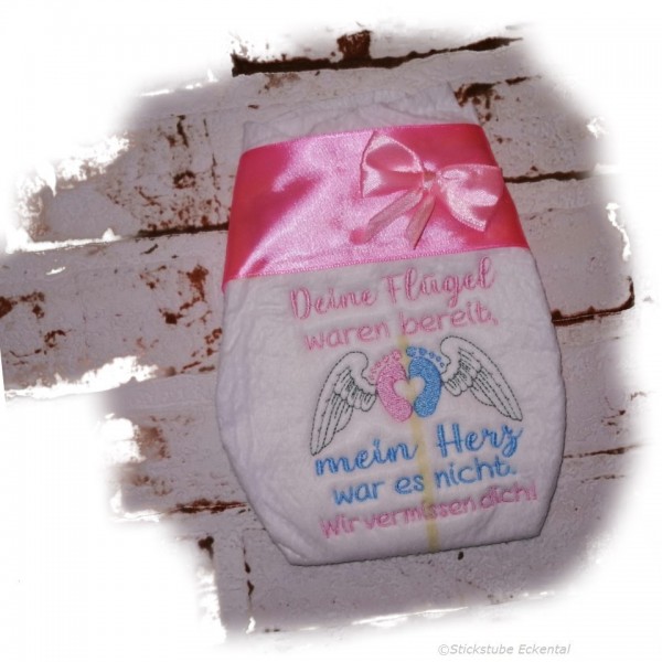 Wunderschönes Andenken, ein ganz individuelles und sehr persönliches Geschenk. Es bleibt eine wundervolle Erinnerung! Satinband und Schleifen festgeklebt. Stickdatei "Rock-Queen"