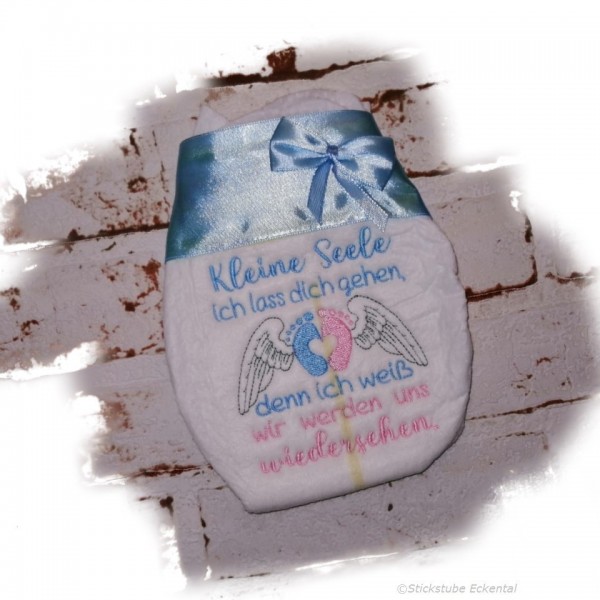 Satinband und Schleifen festgeklebt. Stickdatei "Rock-Queen"