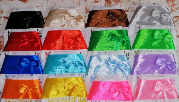 Satinband und Schleifen festgeklebt.