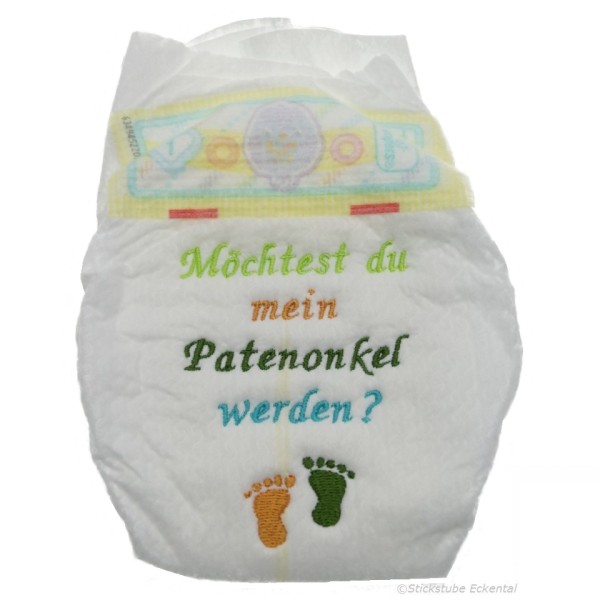 Achtung: Die Windel dient nur als Deko, sie ist nach dem Besticken nicht mehr zum Gebrauch geeignet! PAMPERS ist eine eingetragene Marke von Procter & Gamble.